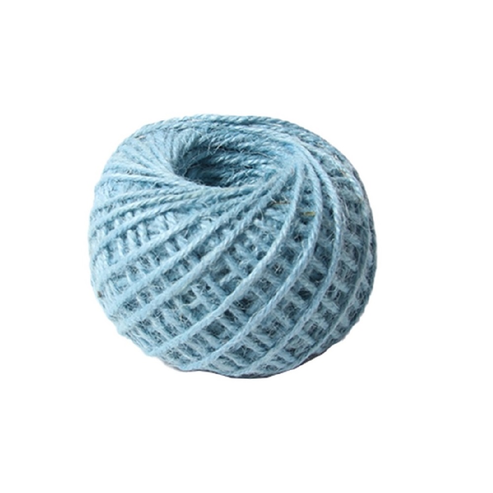 Джут 2мм х 50м голубой — натуральная декоративная нить для творчества, упаковки подарков, флористики и рукоделия. Прочная и гибкая, легко завязывается и красиво держит форму.