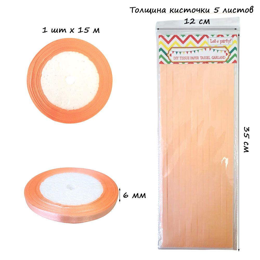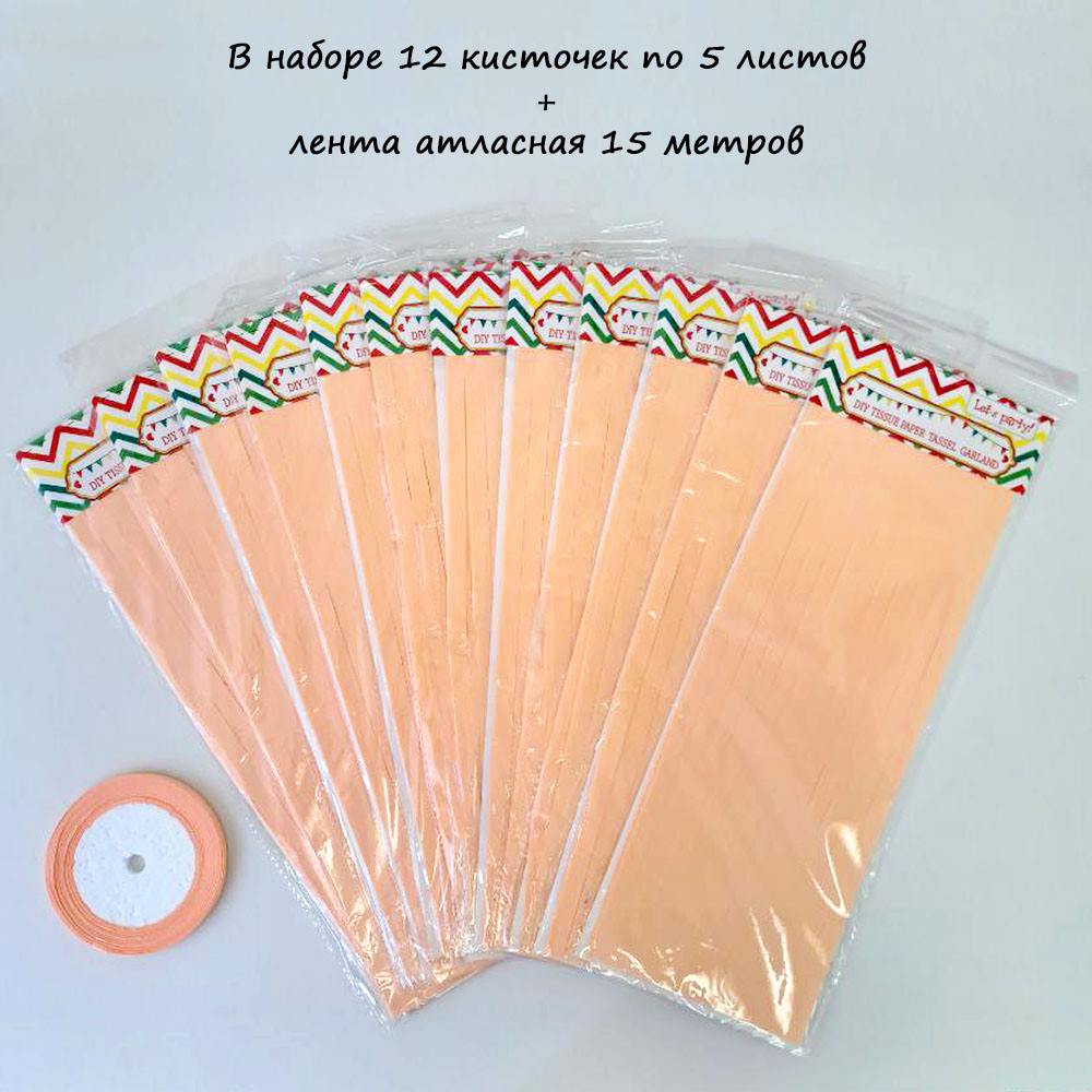 Гирлянда тассел 12 кисточек по 5 листов, персиковый