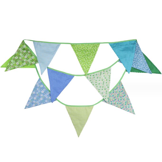 Гирлянда состоит из 12 флажков, расстояние между флажками 6 см, общая длина составляет 4 м.