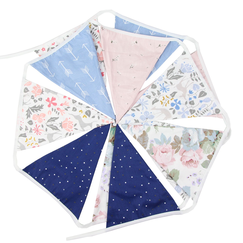 Гирлянда состоит из 12 флажков. Расстояние между флажками - 6 см, общая длина составляет 4 м.