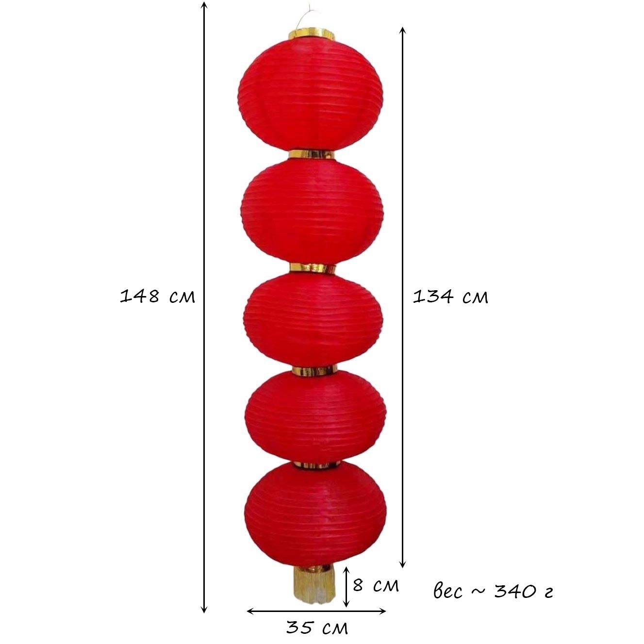 Круглый китайский фонарь состоит из пяти ярусов диаметром 35 см каждый.