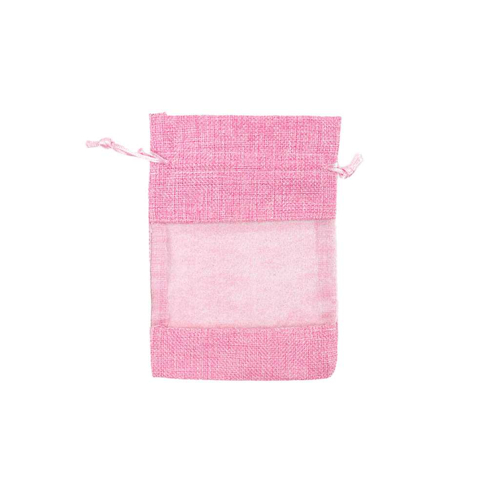 Мешочек из мешковины и органзы 10х14 см розовый