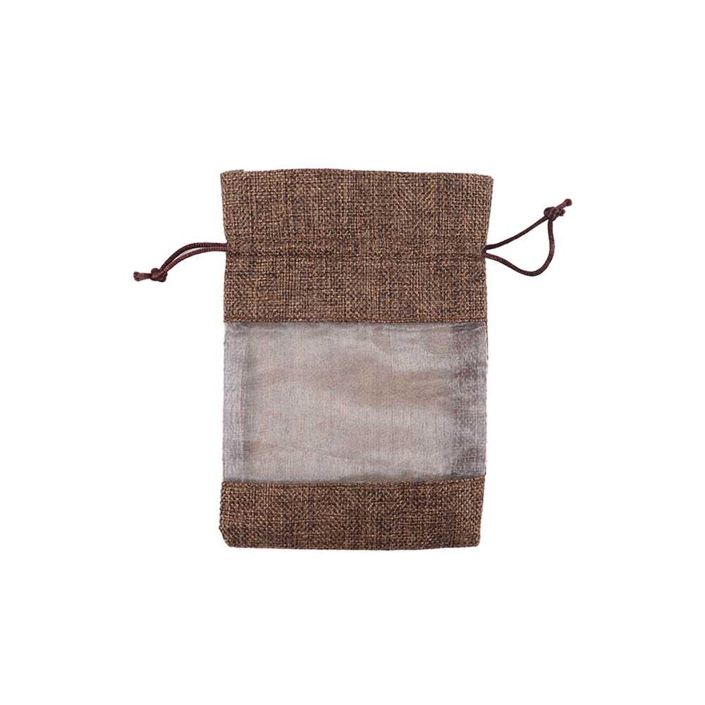 Мешочек из мешковины и органзы 10х14 см темно-коричневый
