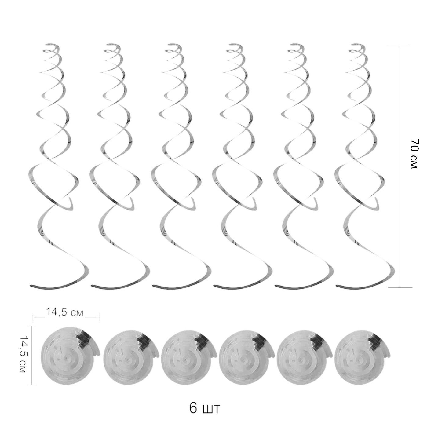 Спираль пластиковая 70см 6шт, серебро