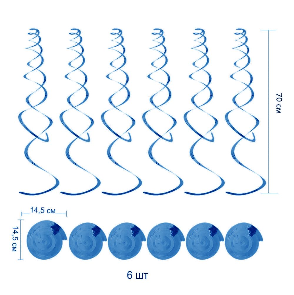 Спираль пластиковая 70см 6шт, синий