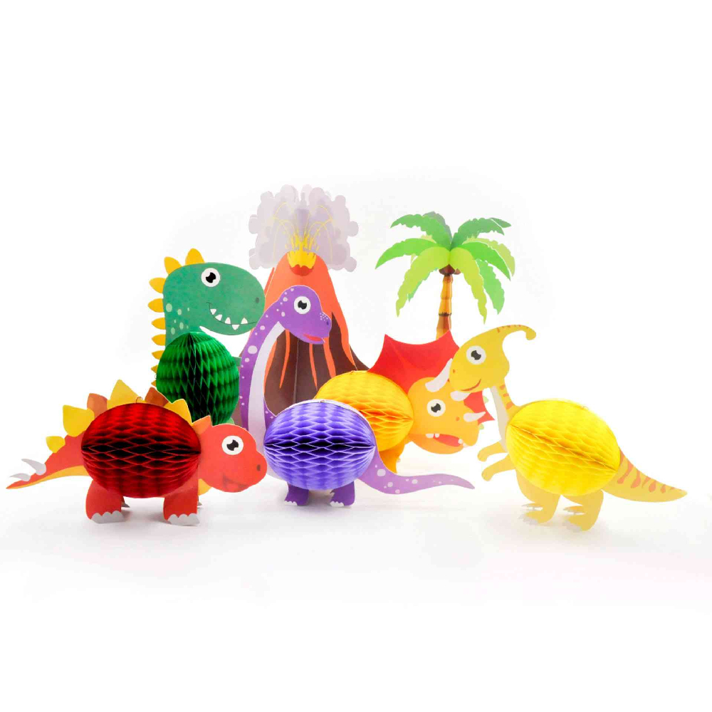 Стоячие сотовые украшения «Динозавры» — яркий набор декоративных фигурок, который превратит детский праздник в настоящее доисторическое приключение. Забавные динозавры станут отличным украшением стола, фотозоны или игровой зоны и обязательно понравятся детям.