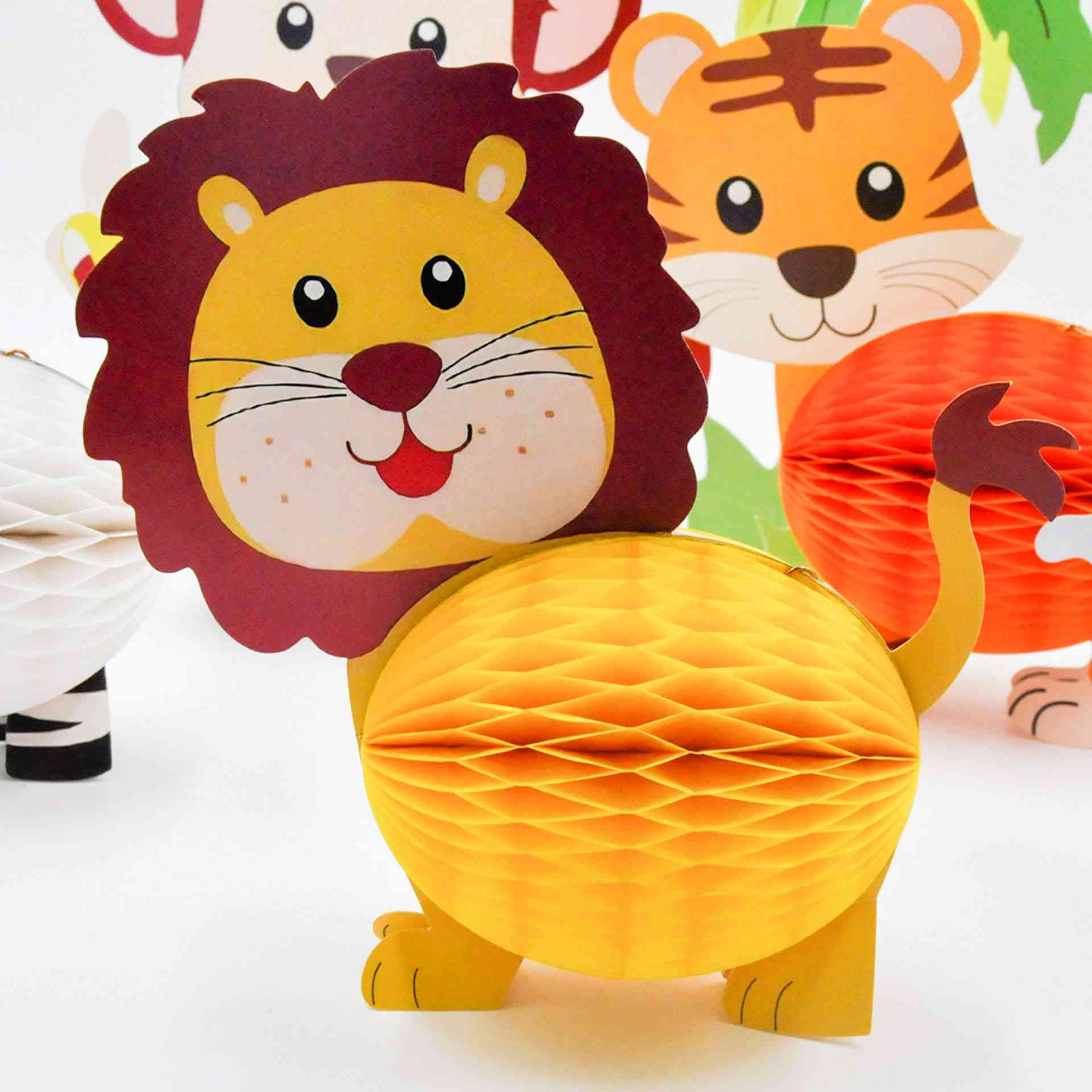 Стоячие сотовые украшения «Джунгли» — яркий набор декоративных фигурок с животными дикой природы, который перенесёт атмосферу тропических джунглей прямо на ваш праздник. Отлично подойдёт для оформления стола, фотозоны и детских тематических мероприятий.