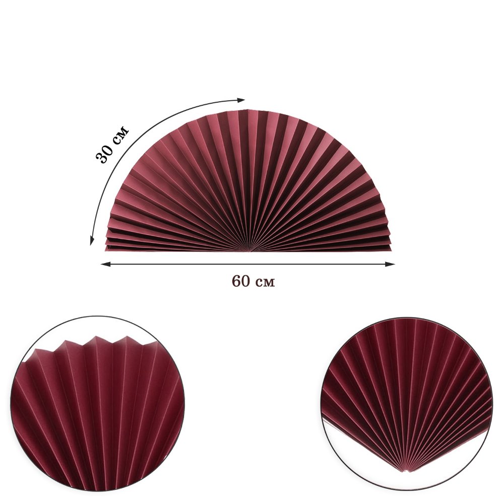 Веер-гармошка 160г/м 60 см, бордовый