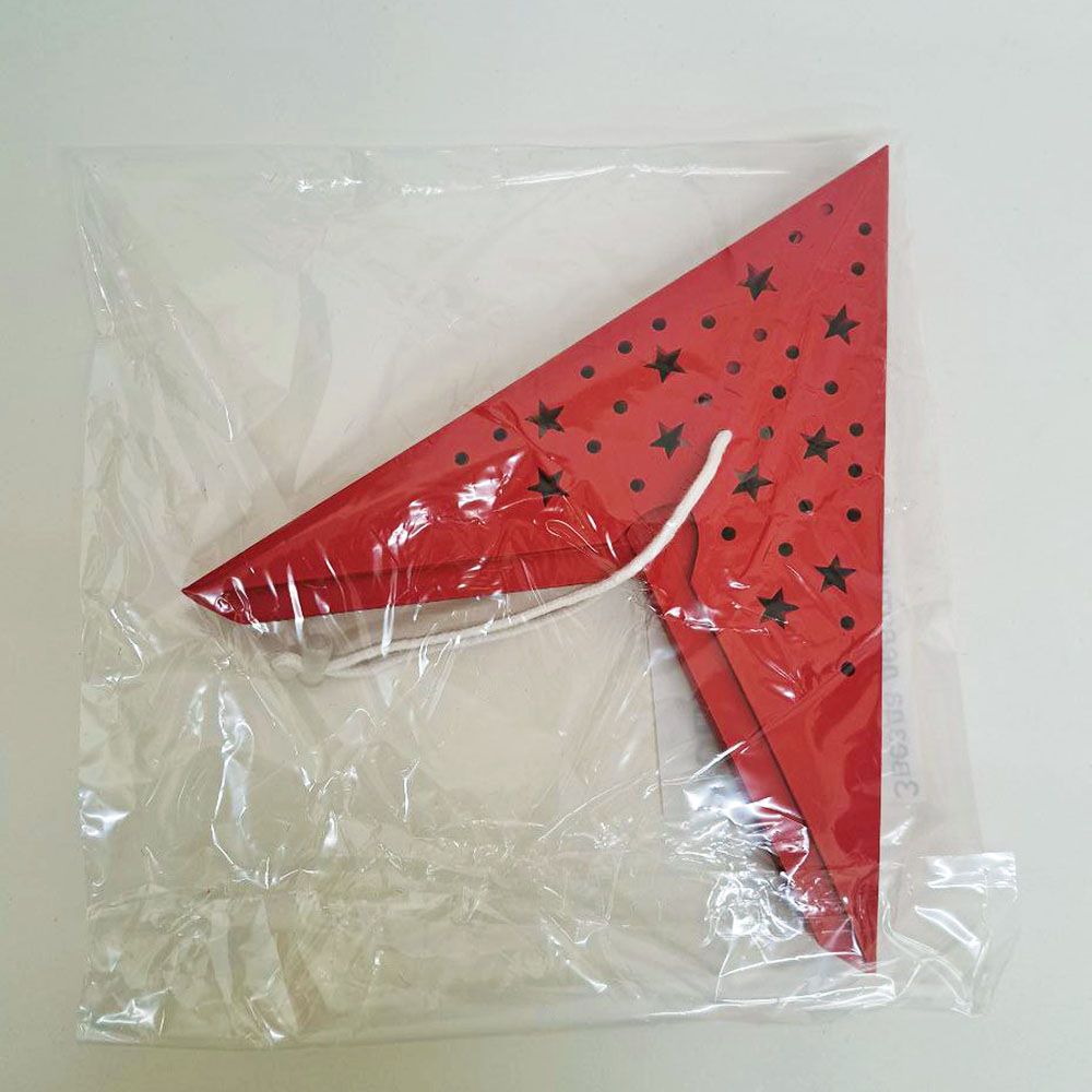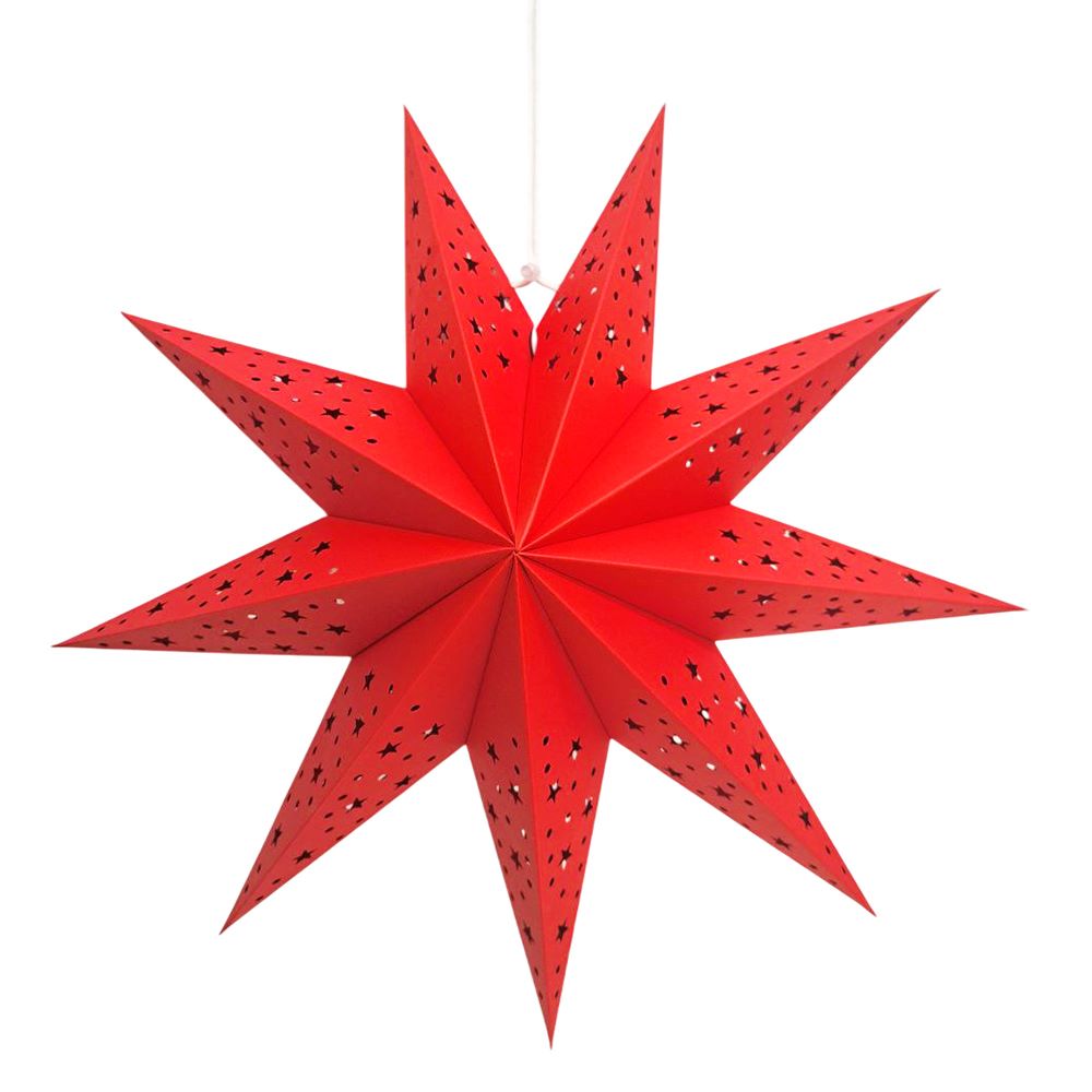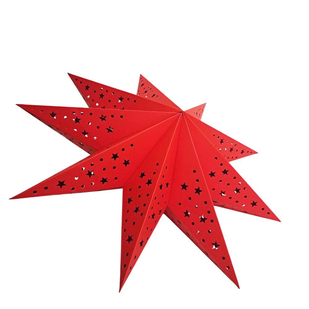 Звезда девятиконечная диаметром 45 см, изготовлена из картона с перфорацией в виде точек и мелких звезд.